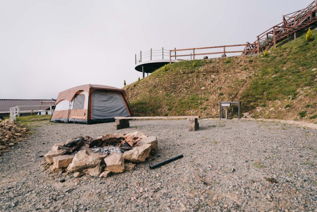Choose from three camping options: Longhouse Camping with large lots and attached bathrooms, Grass Patch Camping featuring three units with private facilities, and Top Deck Camping, offering elevated platforms with kitchen access and separate bathrooms for a more unique outdoor experience.